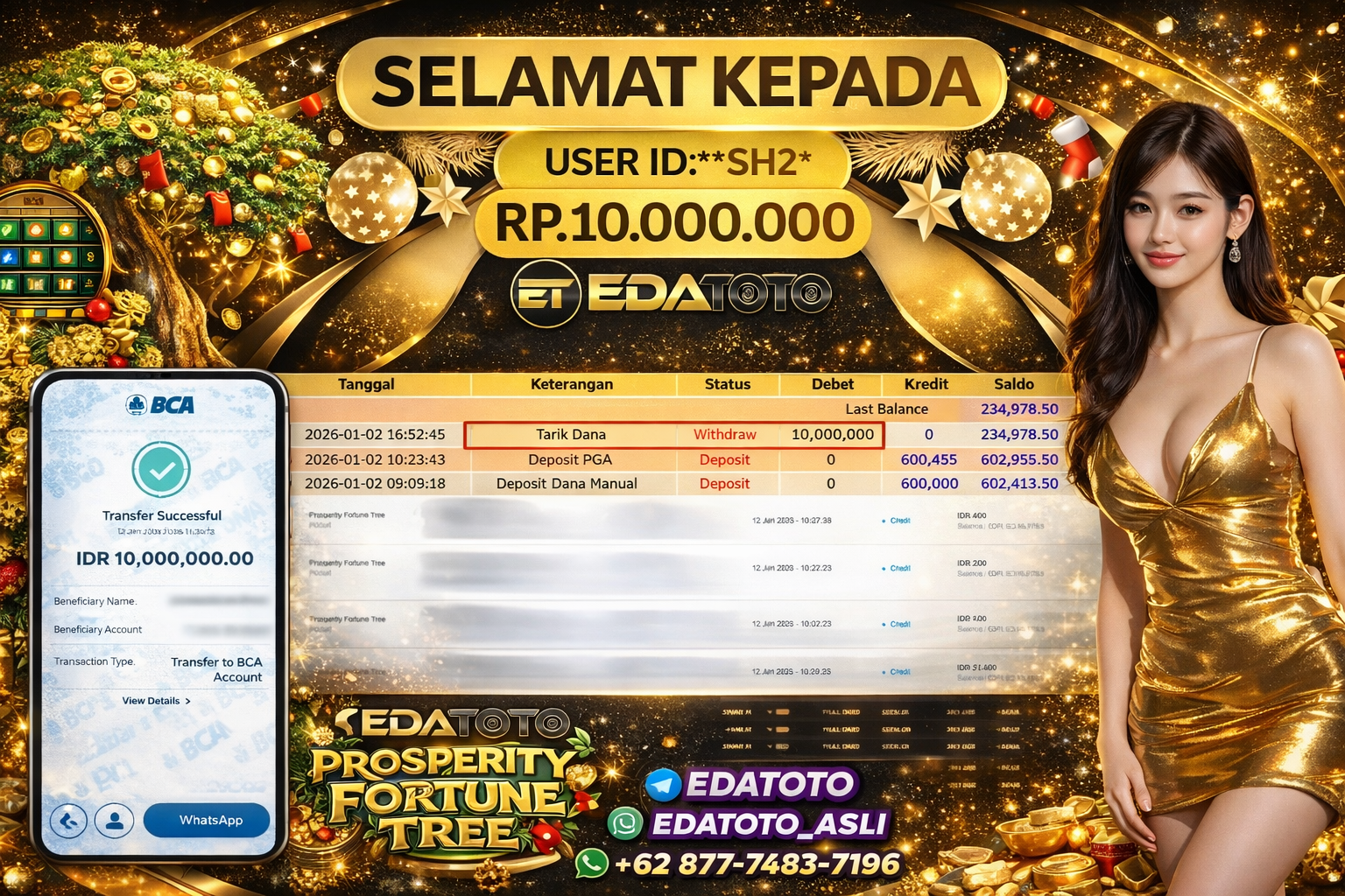 Selamat Kepada Pemilik user ID : JIMI**2 Hari/Tanggal :kamis/ 10, Januari 2026 Jackpot : Rp. 25,500,000 JT Withdraw : 25,500,000 . . .