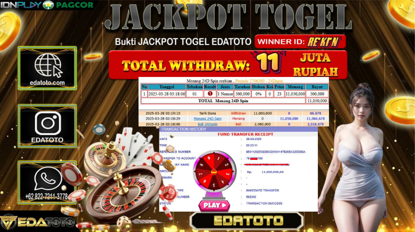 Selamat Kepada Pemilik user ID : re*ki*n Hari/Tanggal : Sabtu / 28 , MARET 2025 Jackpot : Rp. 11.000.000 JT . . .