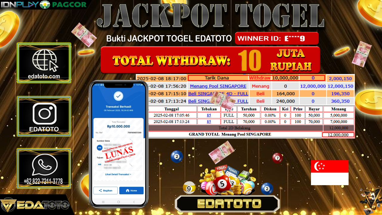 Selamat Kepada Pemilik user ID : WA****O Hari/Tanggal : Sabtu/ 08 , FEBRUARY 2025 Jackpot : Rp. 15.000.000 JT Permainan . . .