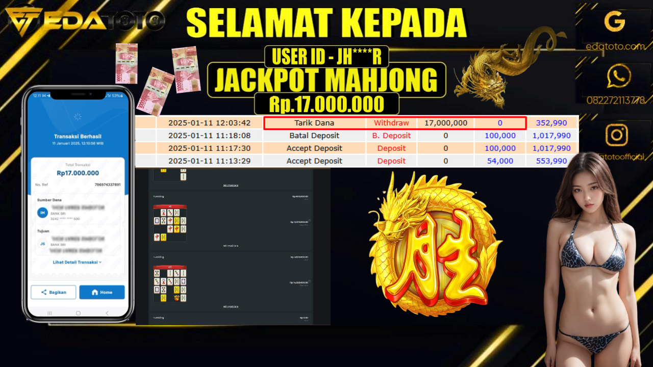 Selamat Kepada Pemilik user ID : JH****R Hari/Tanggal : MINGGU / 12 , JANUARY 2025 Jackpot : Rp. . . .