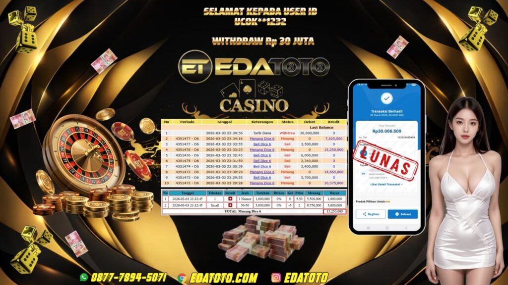 Selamat kepada member setia EDATOTO telah mendapatkan JP Bermain Di :dice 6